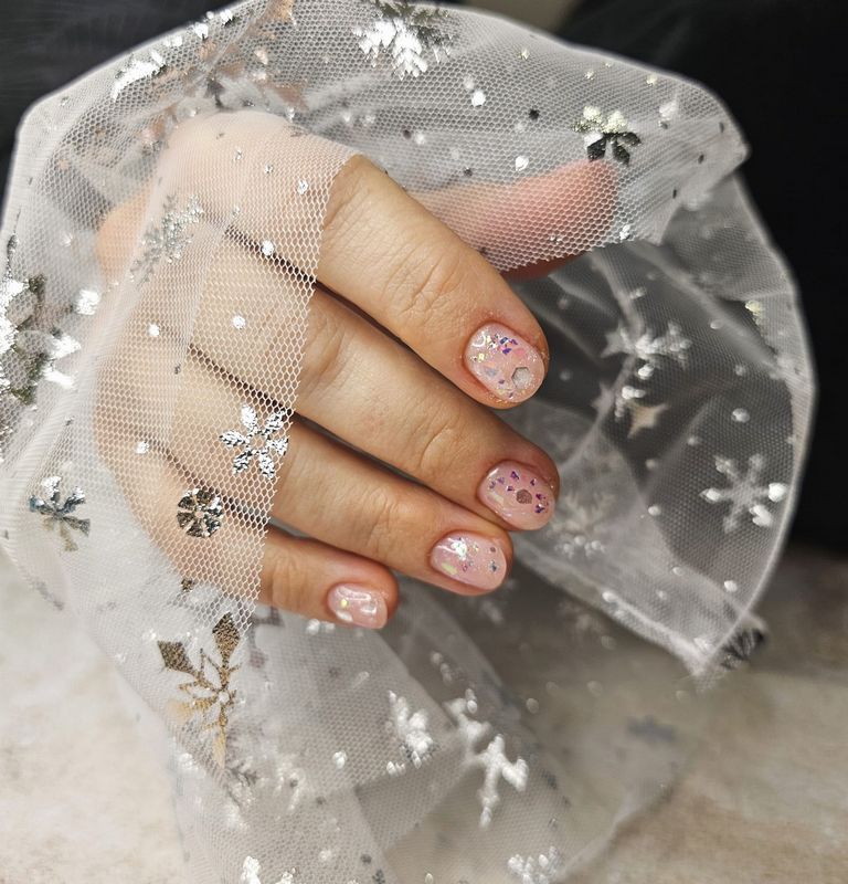 ilość Rękaw do zdjęć paznokci tiul biały śnieżynki srebrne