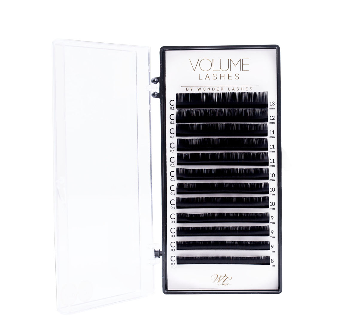 Linia Russian Volume zaprojektowana do stylizacji metodami objętościowymi. Rzęsy jedwabne z dodatkiem włókna syntetycznego, odporne na odkształcenia. Wykonane z najwyższą starannością. Wyróżniają się lekkością oraz naturalnym połyskiem w kolorze głębokiej czerni.